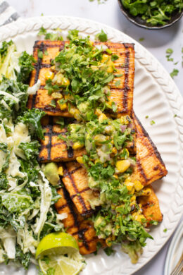 Chipotle Tofu Steaks with Avocado Corn Salsa