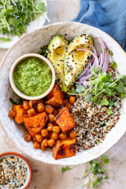 Pesto Sweet Potato Quinoa Bowls